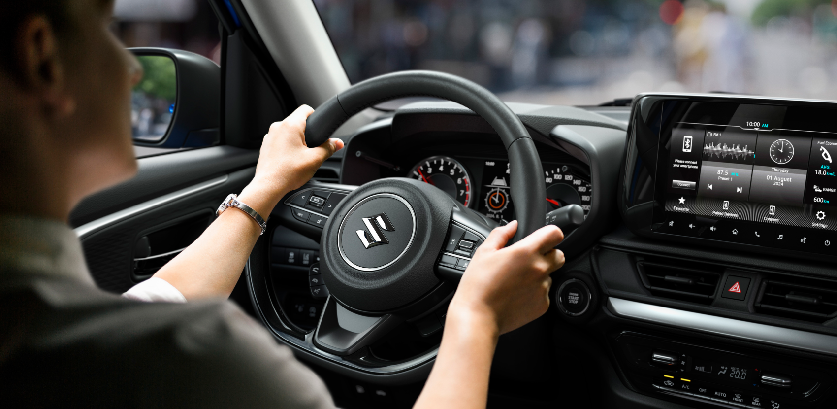 Con un nuevo panel flotante para el sistema multimedia, el Swift Híbrido, está orientado a brindar mayor visibilidad al conductor, sin perder la vista del camino.