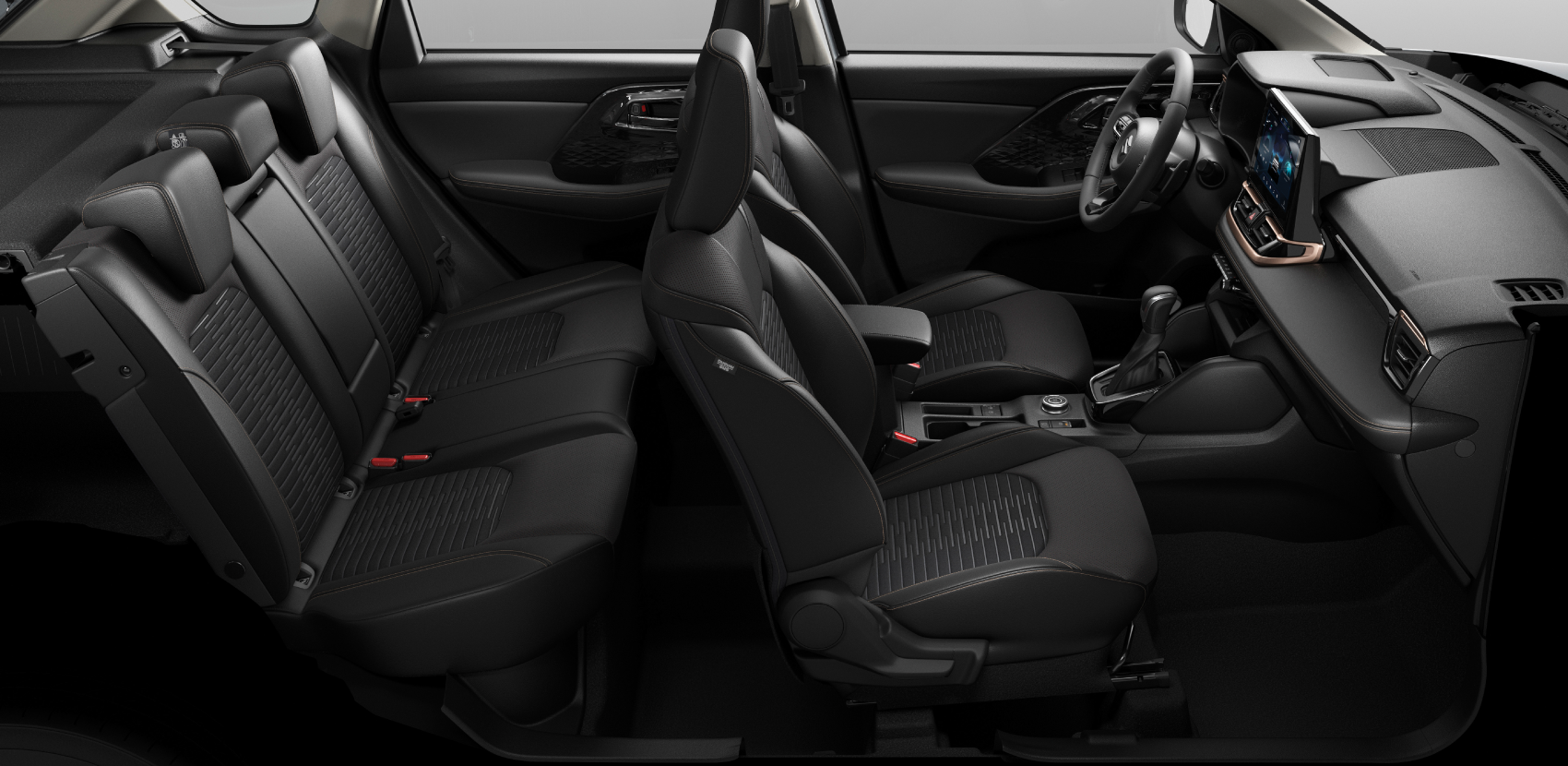 Al ingresar al interior del Suzuki Across Hibrido, lo primero que llamará tu atención será el perfecto equilibrio entre su robustez y sofisticación. Los asientos están hechos de material de alta calidad que destila elegancia. Las suaves almohadillas forradas en cuero sintético con costuras dobles plateadas en el panel de instrumentos y los adornos de las puertas le dan un aspecto de primera.